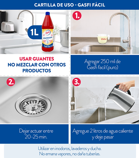 - Aplicar en lavaderos, tuberías, inodoros, entre otros